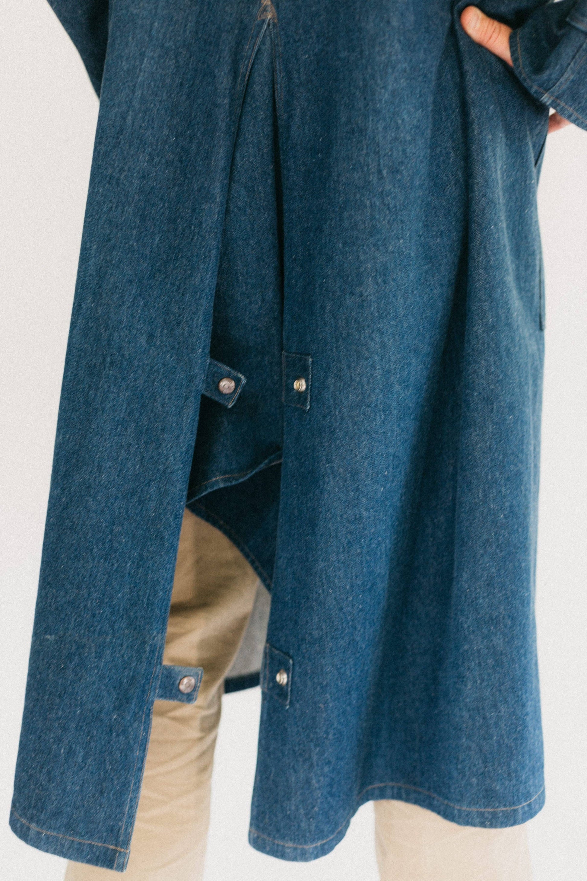Misses 6-22; Men's 34-48. This is the classic outback duster coat. Its rugged construction and hearty design is perfect whether riding the open range or the urban trails. Make it in canvas or denim for a traditional look, microfiber or crinkle nylon for an updated water-repellent version. The original version, View B, is ready for the range with wrist tabs, elbow patches, and a detachable shoulder cape.  Leg tabs and the long fantail vent in center back cleverly wrap around to form a type of legging for added body and saddle protection while riding.  The front opening is covered with a rectangular flap for wind and rain protection, and the partial lining adds warmth.