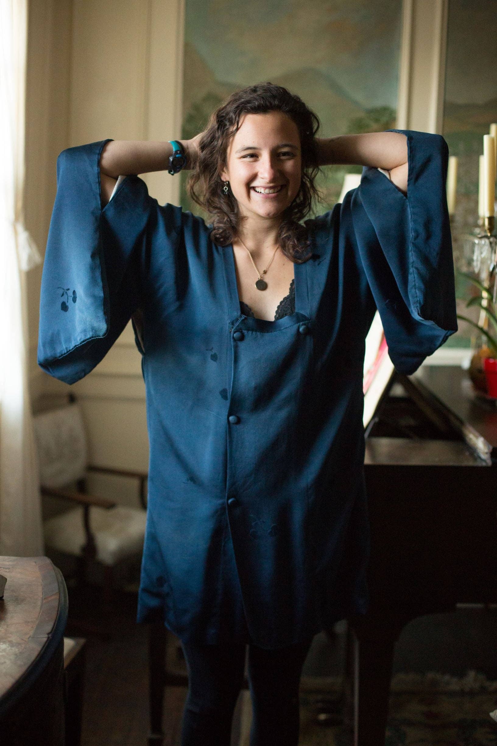 Today, the Michiyuki is worn as a dressy overcoat, casual coat-dress, and artist's or work smock, perfect for studio or garden tasks. Lengthened and made out of water-repellent fabric, it also functions as a raincoat.