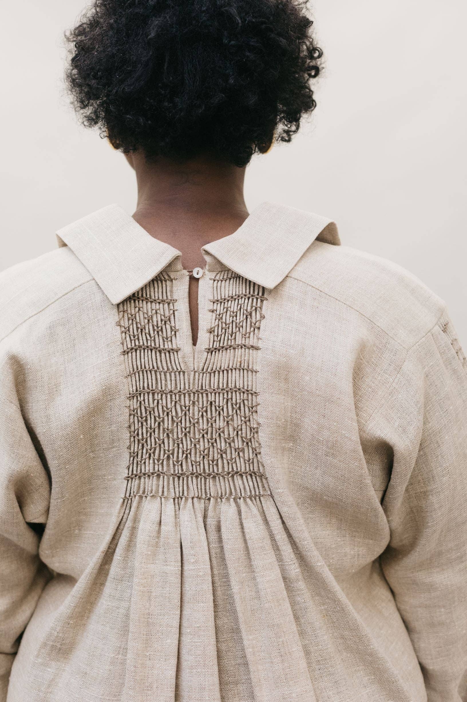 This is a sewing pattern for a traditional English Smock. Smocks have been worn by rural laborers as protective overgarments for hundreds of years. The technique of hand-smocking evolved from the way many of these early garments were fitted, sized, and embellished.