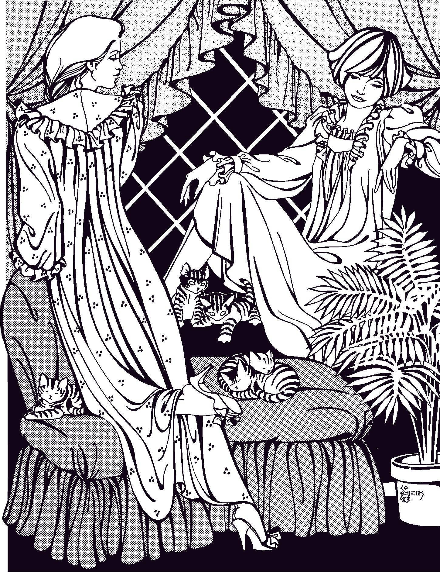View A has a ruffled neckline and is cut just below the knee. View B features a wide triangular ruffled collar and the traditional ankle-length.