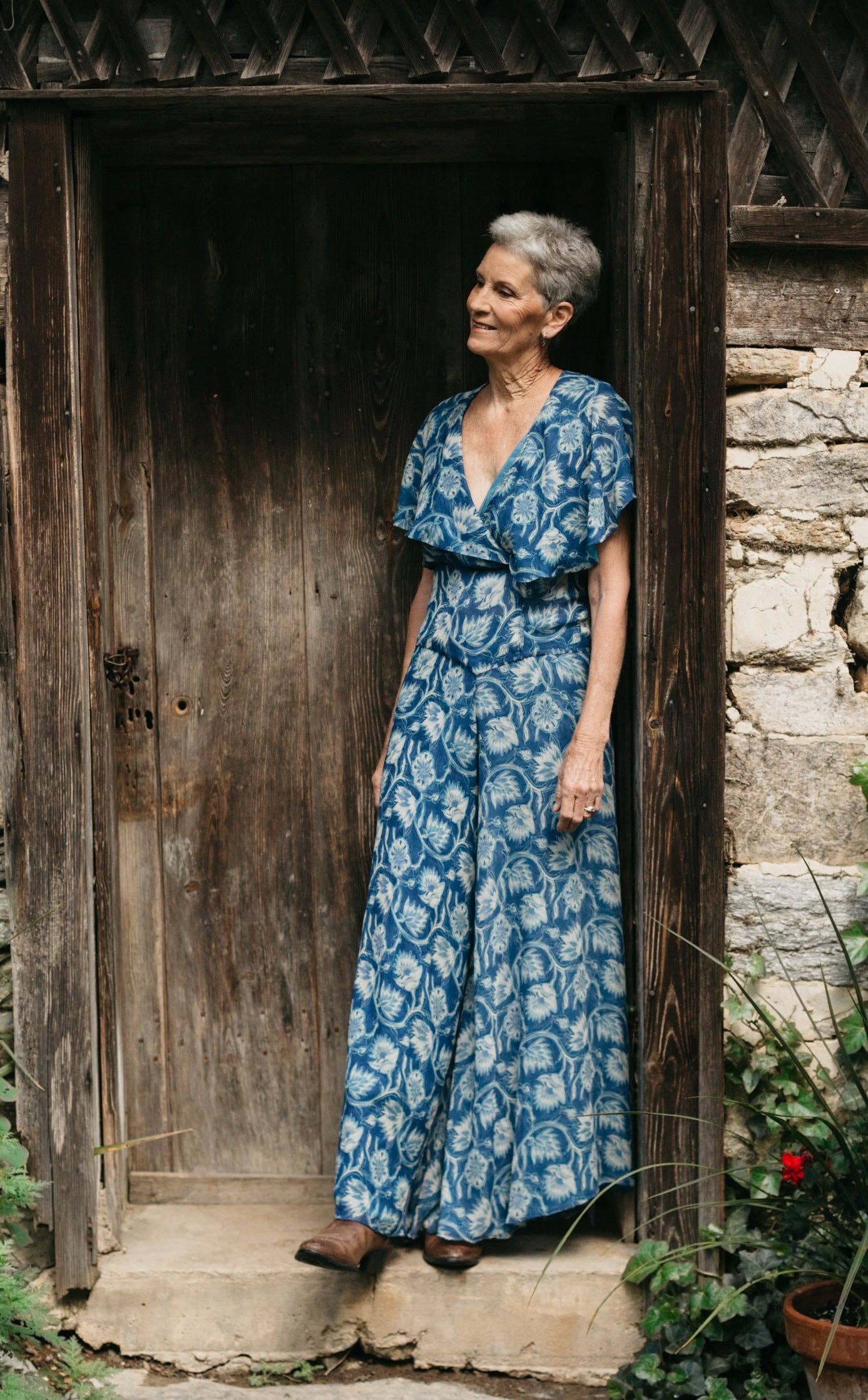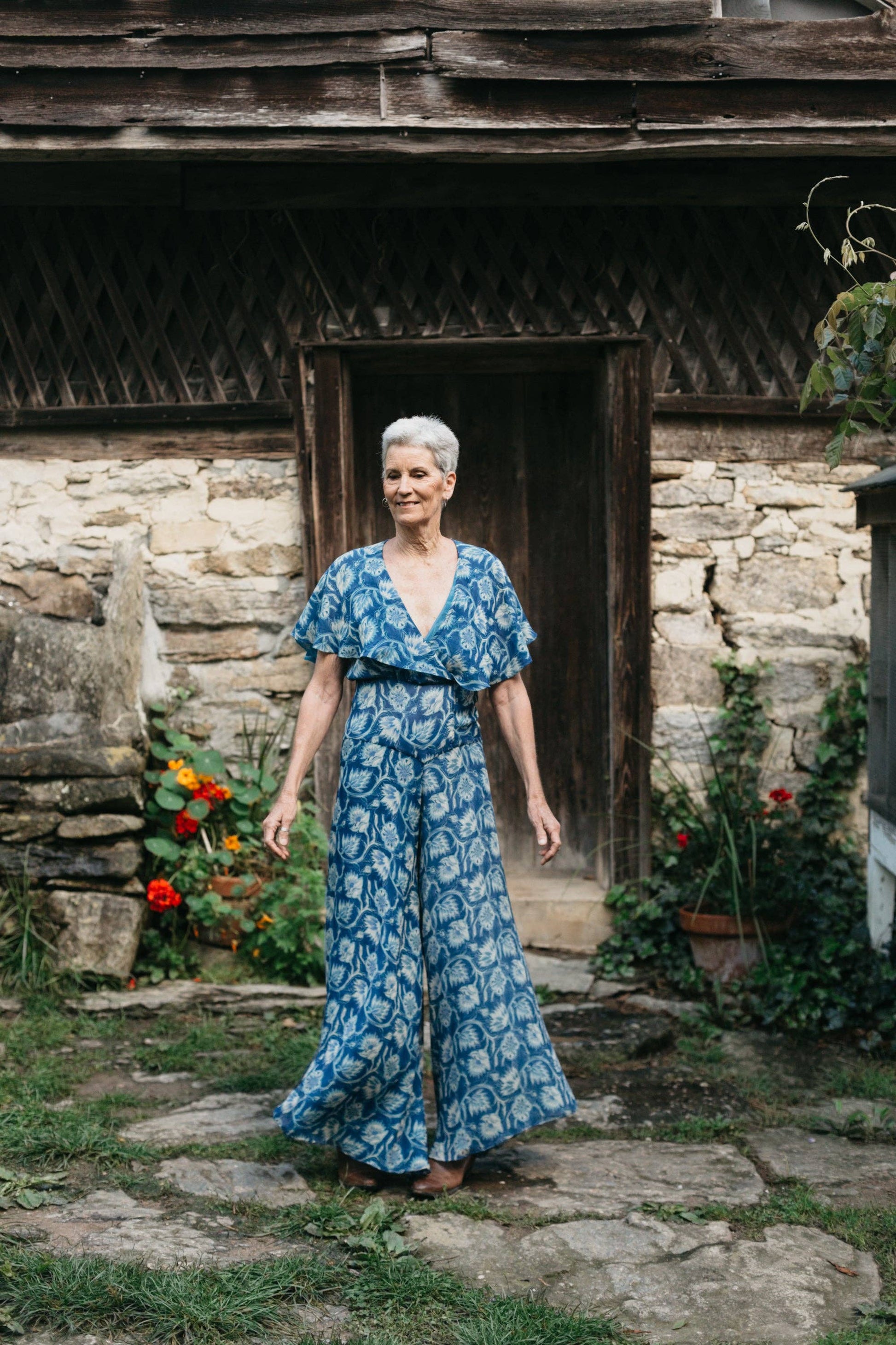 Sizes XS-2XL Beach Pyjamas, made of silk, linen, or cotton, often in bright, cubist-inspired prints, were the height of summer and resort fashion in the 1920s and 1930s.  They were worn from the afternoon to the evening as a fashionable summer style.  They generally consisted of wide-legged trousers and a jacket of matching fabric.  Slightly more casual one-piece pyjamas for daytime wear sported decorative collars, bindings, or sashes, and were sometimes worn with coordinating bolero jackets.   Our sewing pattern for a one-piece, sleeveless version features a full shawl collar that wraps in front and falls gracefully over the shoulders in back.