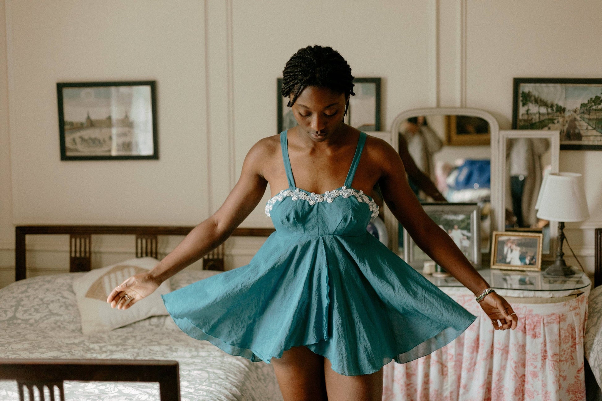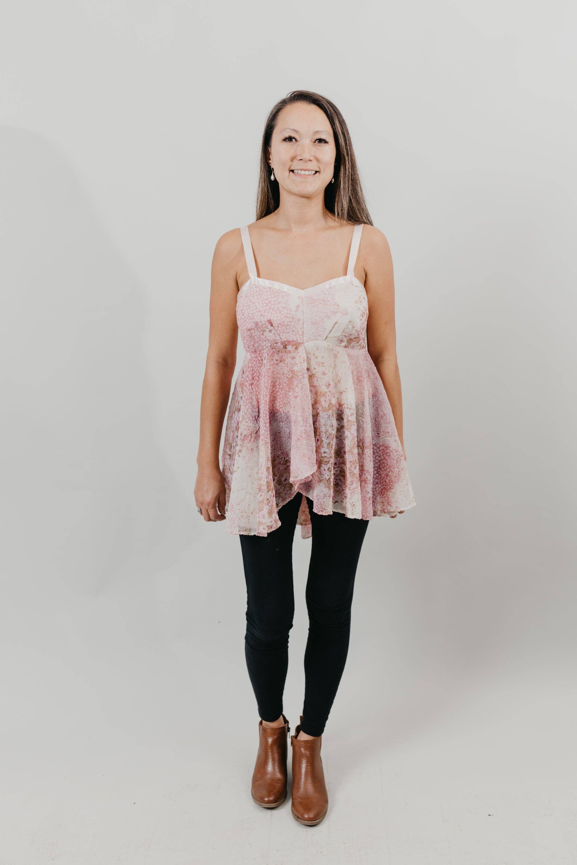 Sizes XS-4XL. This Passionflower baby doll top is inspired by the sassy and sweet vintage lingerie of the mid-1900s. This sewing pattern features an empire waist, circle skirt, and triple-darted bodice.  The pattern is sized XS-4XL with three cup sizes for each size (B, C, and D).  The full, above-knee skirt has an open front and drapes beautifully to a slightly lower length in the back. Instructions for optional lace applique and lace insertion are included.  This is, of course, perfect as a nightgown or sleepwear, but it also makes a cute top to wear out over jeans, leggings, or shorts! This rendition of the nighttime lingerie dress is inspired by the baby doll gowns made in the 1940’s by American lingerie designer Sylvia Pedlar.