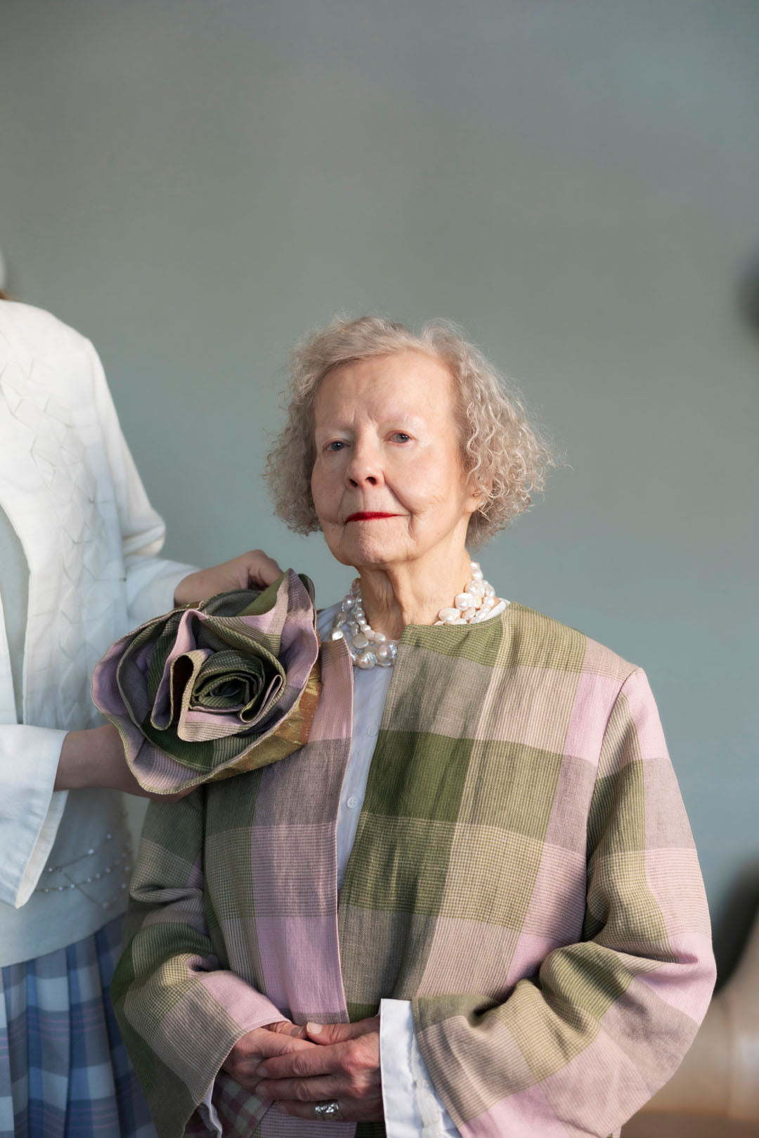 Attach ADELE to structured garments such as jackets or coats, or to woven fabrics, and it will hold its shape and stay in place thanks to discreet pins. Delicate knits are less suitable, as the flower needs a solid base to support it.
