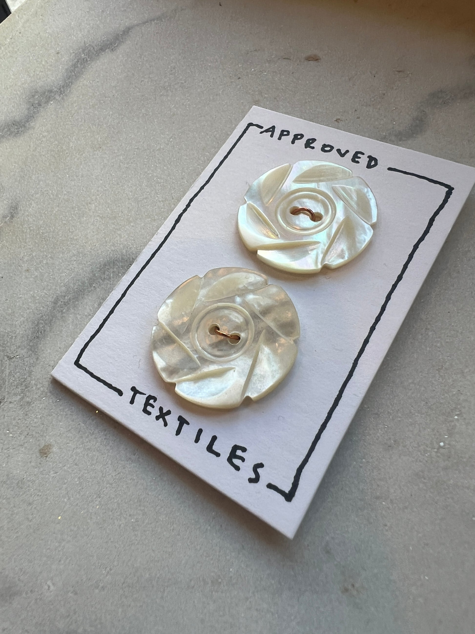 Set of 2 carved Mother of Pearl buttons, perfect for a sweater, jacket, bag closure, etc