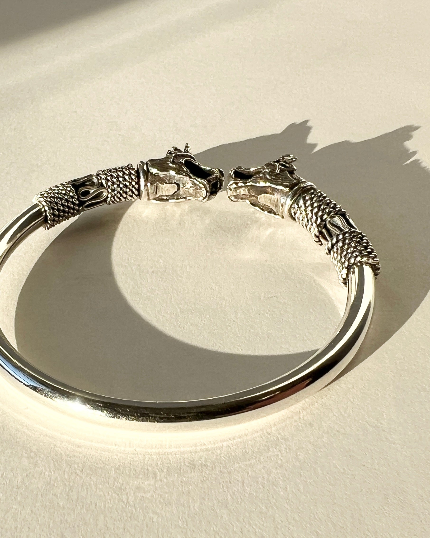 vintage silver bangle with twisted wire filagree and cast dragons, from Chandni Chowk Market in New Delhi.