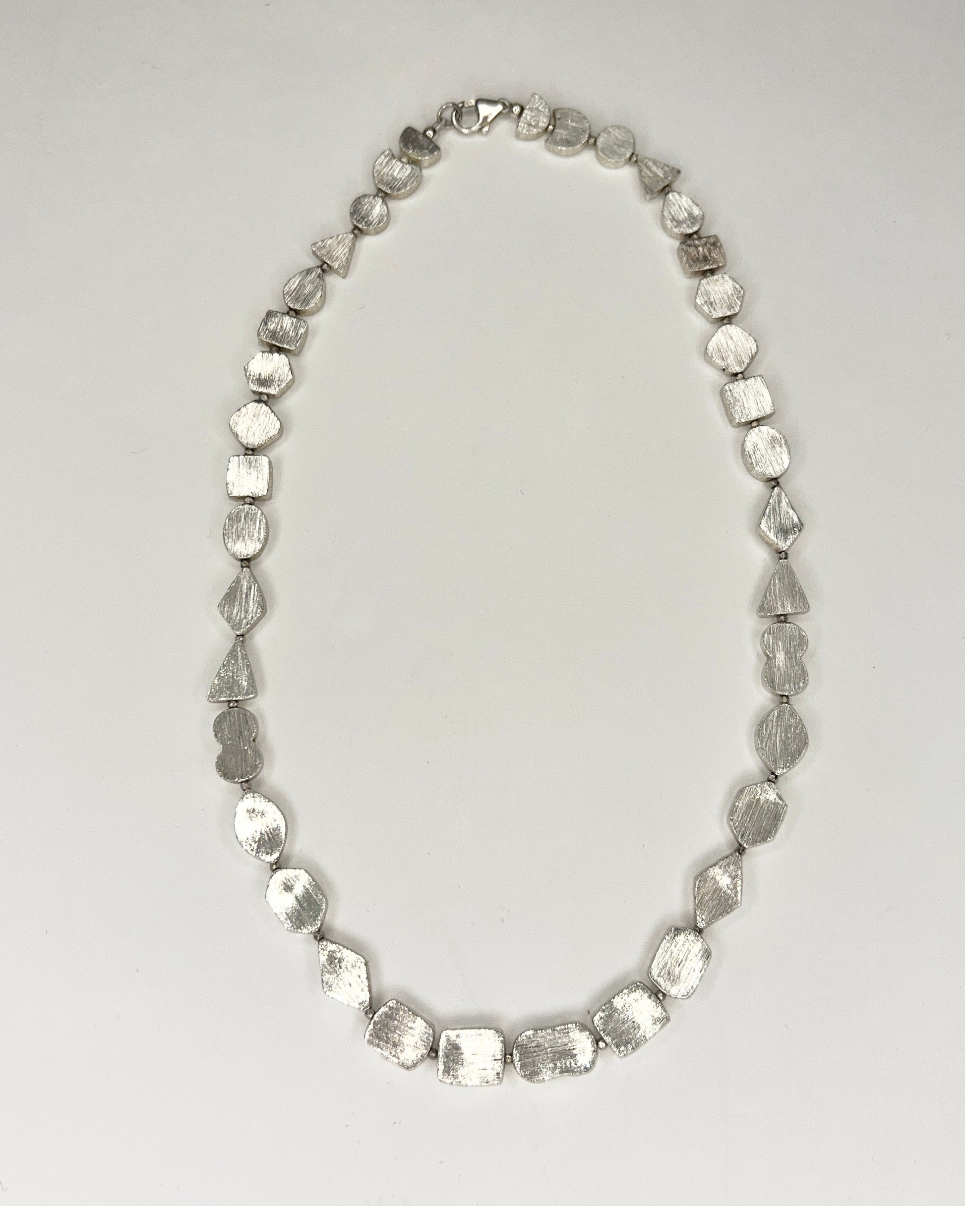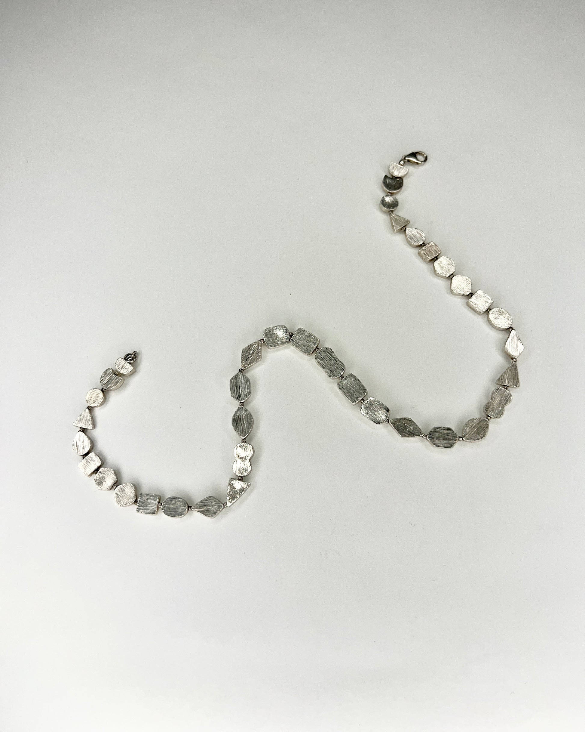 Vintage necklace with individually cut silver shape beads from Chandni Chowk Market in New Delhi. 925 silver.