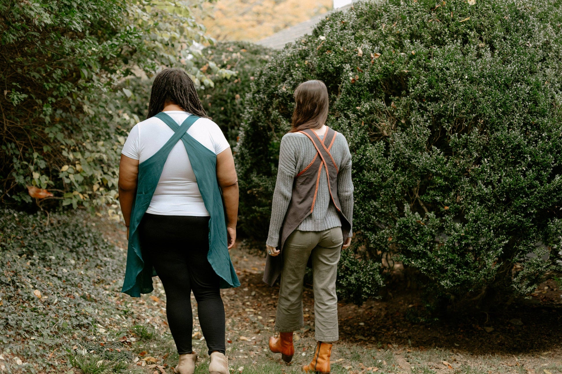 Aprons are a great way to protect your clothing while adding a bit of charming old-world style. The design for this apron sewing pattern was one Cynthia (long time Folkwear fan and employee) made from one her grandmother made and wore. Her grandmother drafted the pattern, offered in a 1900’s woman’s magazine that was borrowed from her mother. This pattern was such a useful favorite that she continued to make and wear it her entire life. Cynthia hardly remembers her not wearing some version of it no matter what she was doing.