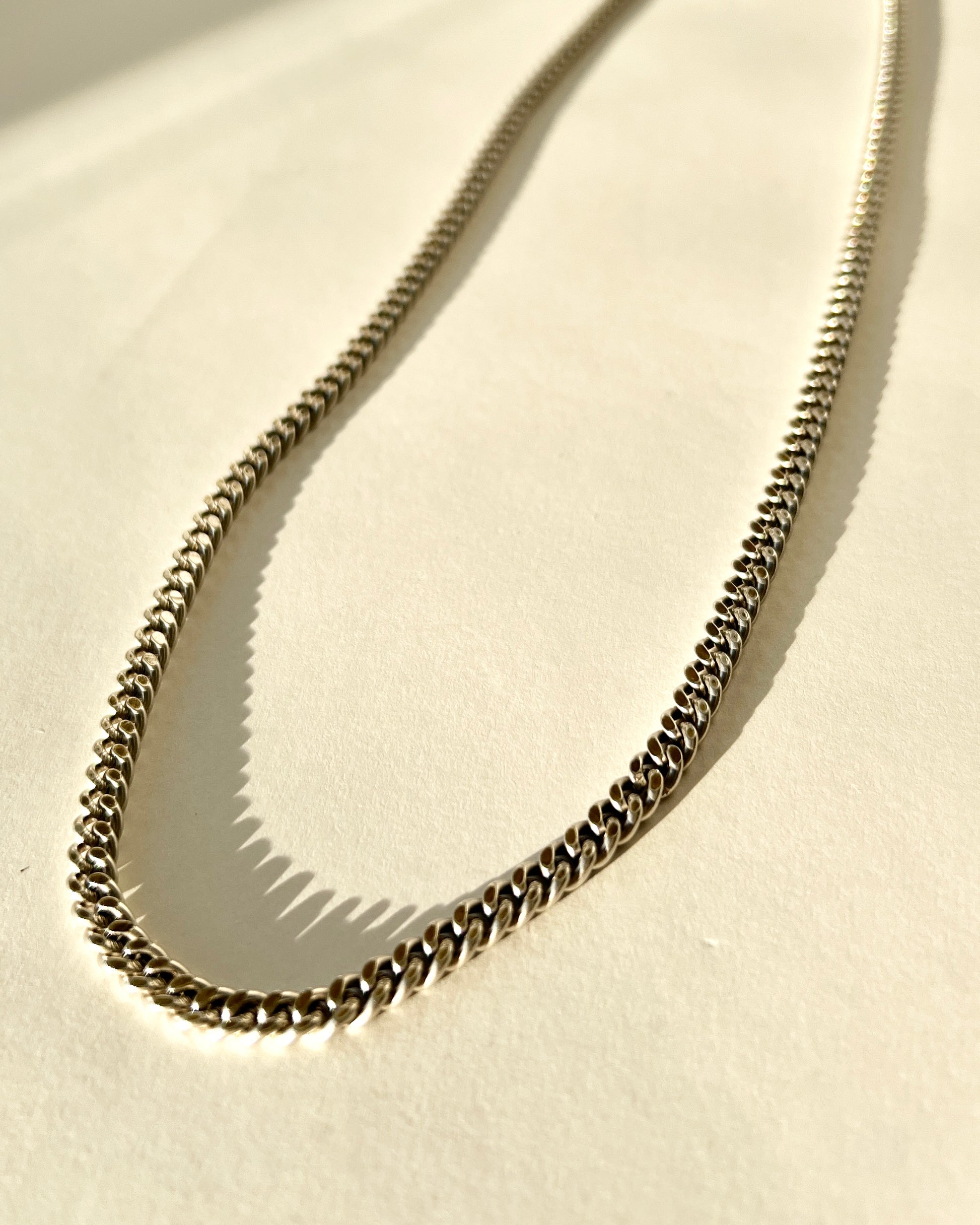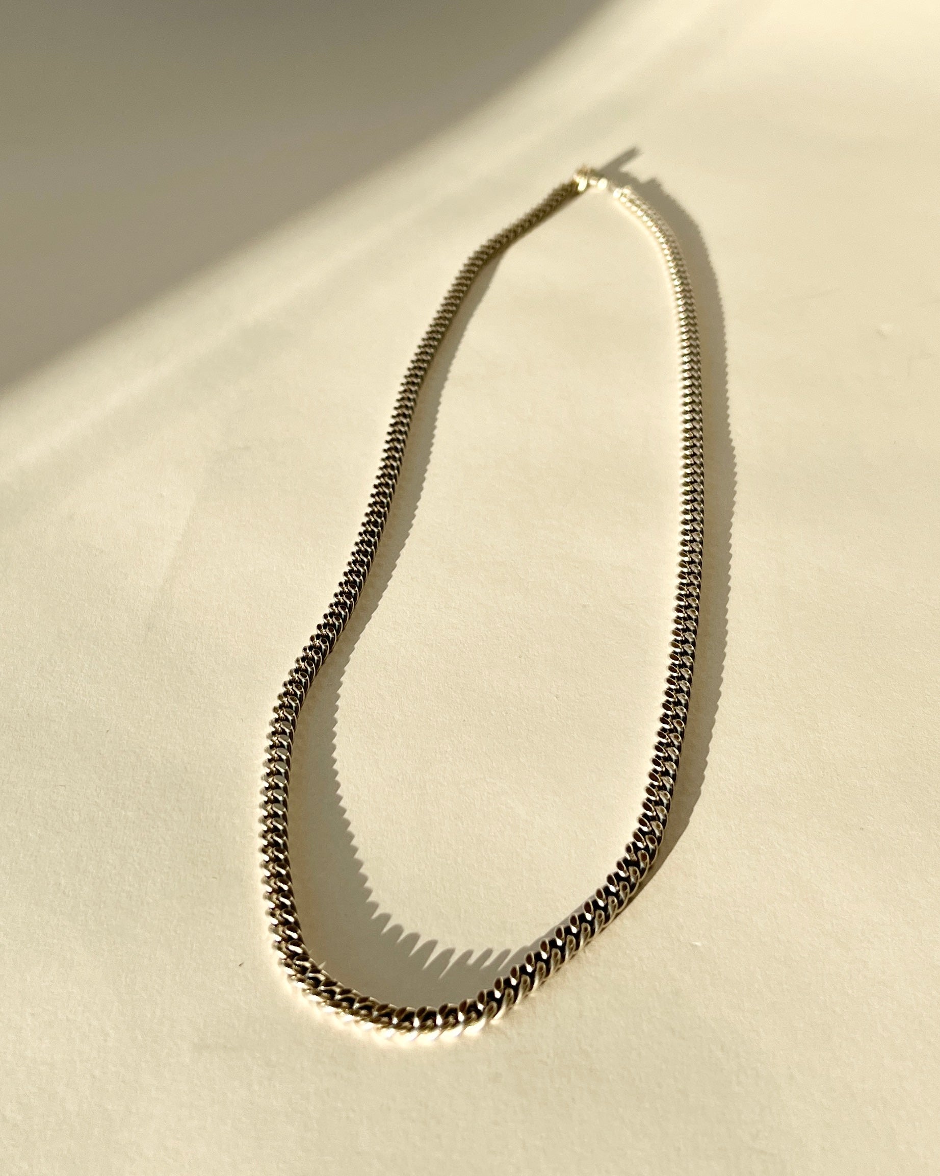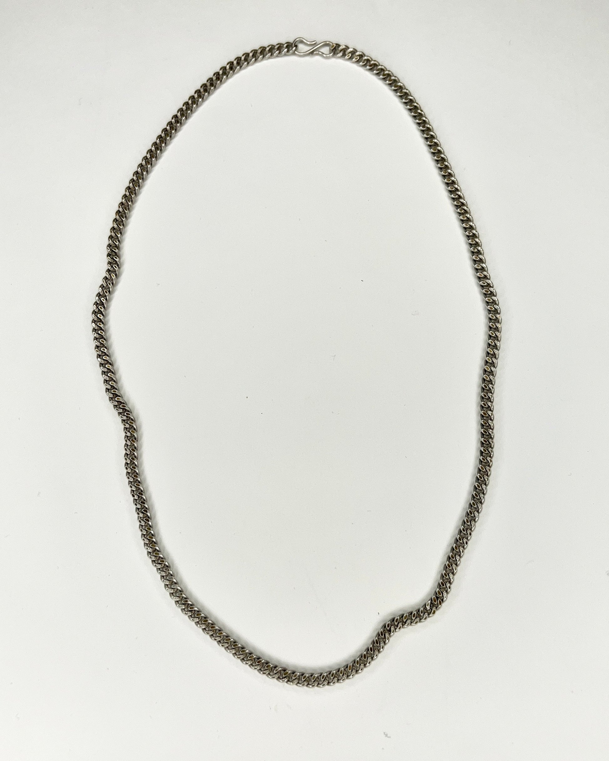 Heavy weight vintage silver flat chain necklace with S-hook closure, from Chandni Chowk Silver Market in New Delhi.