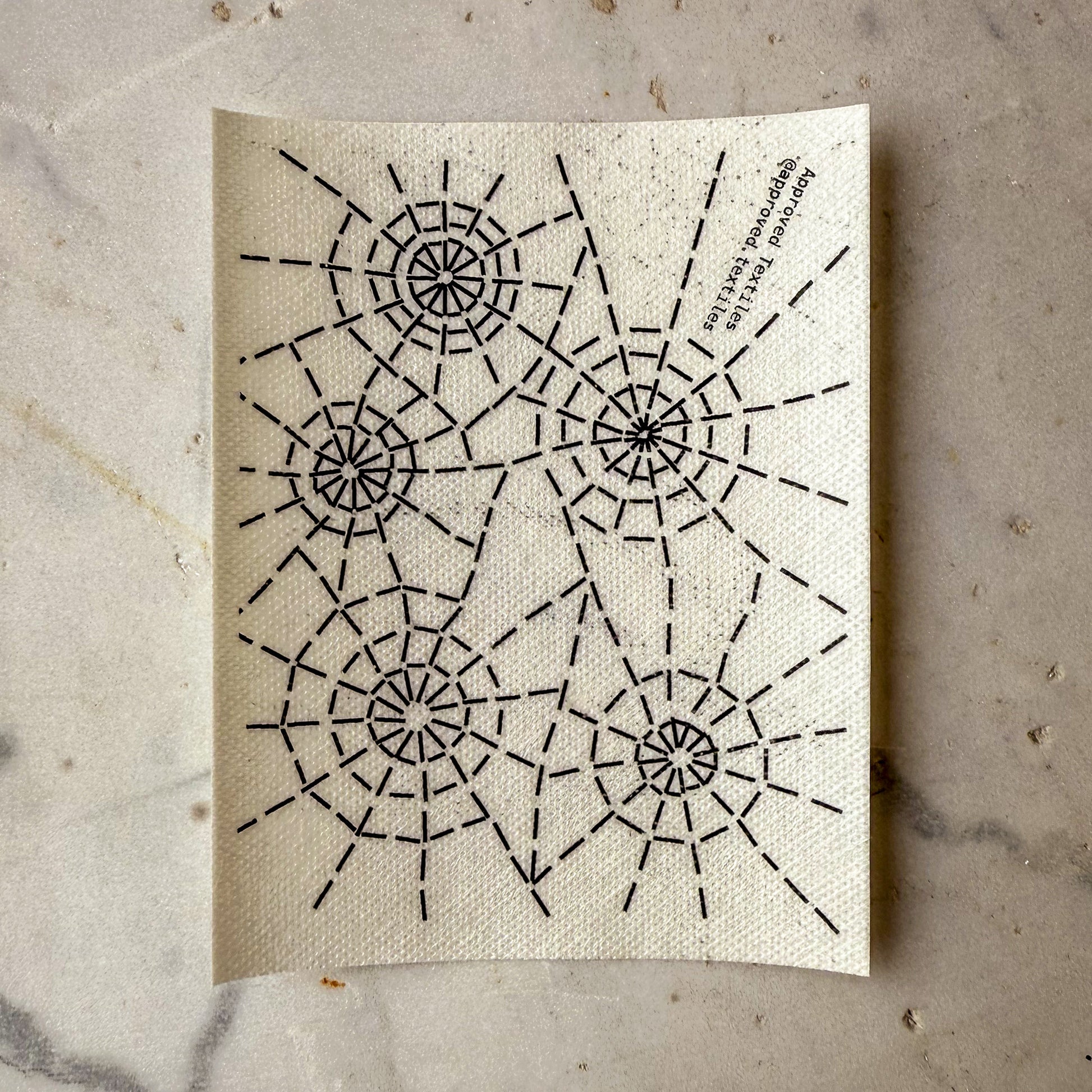 Though known for her monumental spiders, soft sculptures, and abstracted organic forms, Bourgeois was deeply engaged with repetition, texture, and the dialogue between fragility and force. This set translates her language of curves, loops, and skeletal structures into visible mending transfer patterns. Whether you’re reinforcing a well-loved garment or adding bold, expressive detail, these designs invite a tactile, contemplative approach to repair—stitching memory, mischief, and meaning into everyday textiles. Printed on water-soluble stabilizer, they offer a unique way to bring Bourgeois’ restless, resilient spirit into your own work.