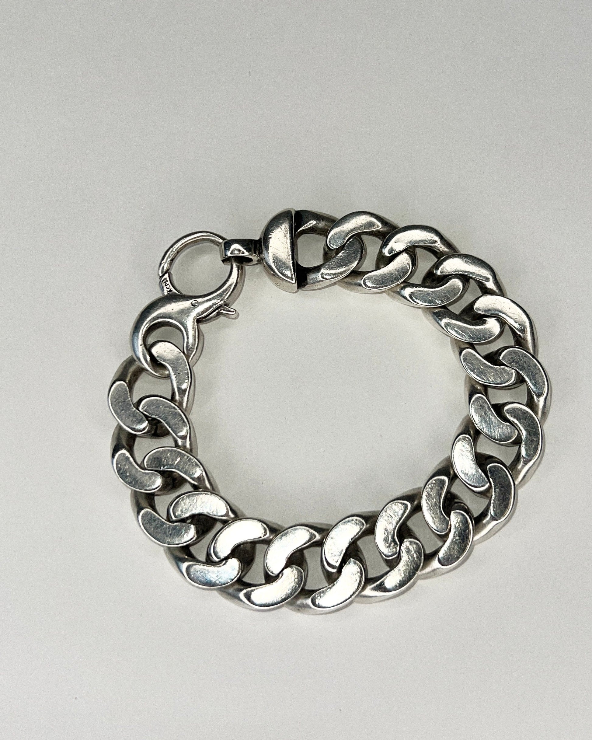 Vintage silver bracelet in very heavy 925 flat chain, from Chandni Chowk Market in New Delhi.
