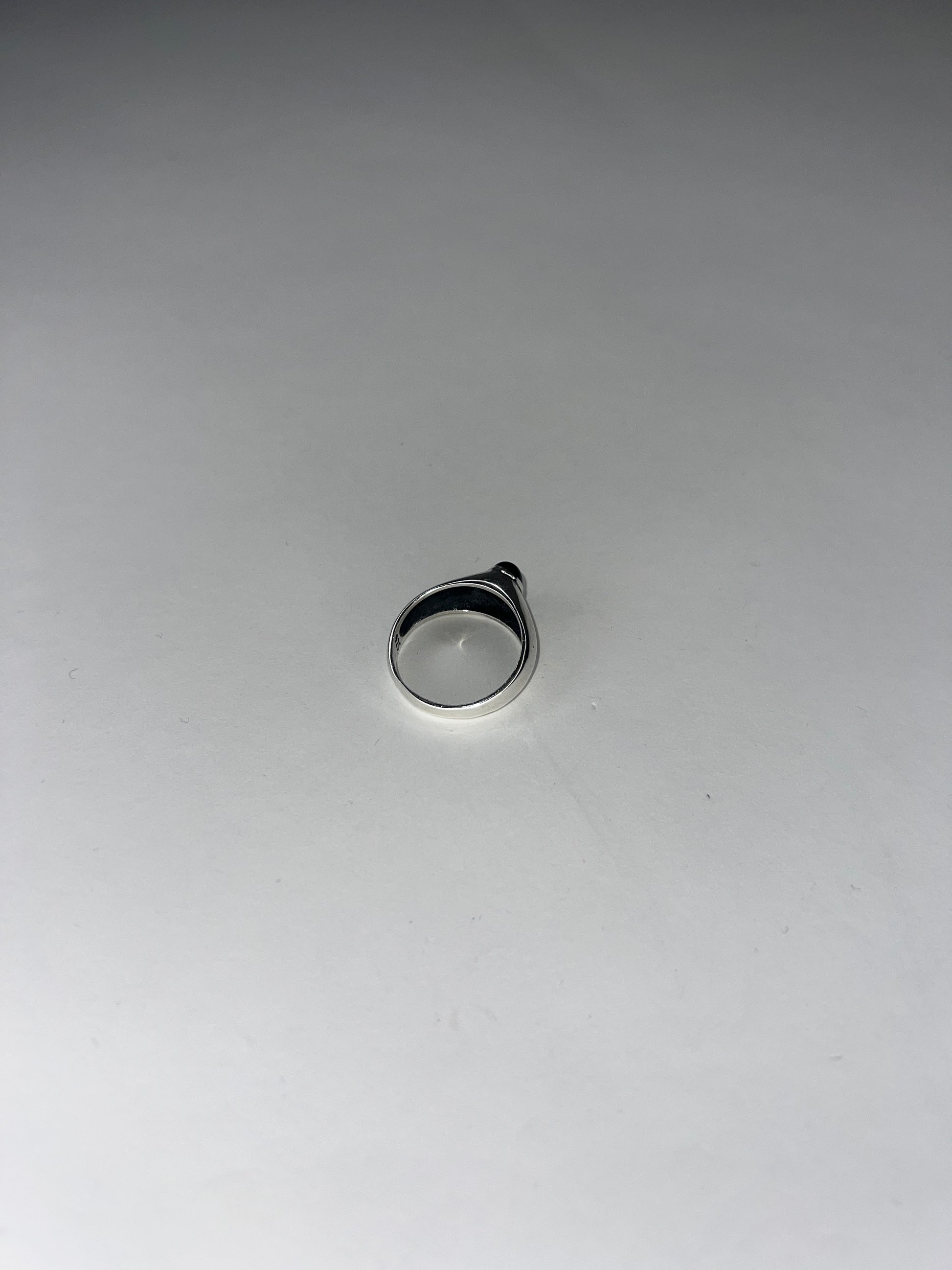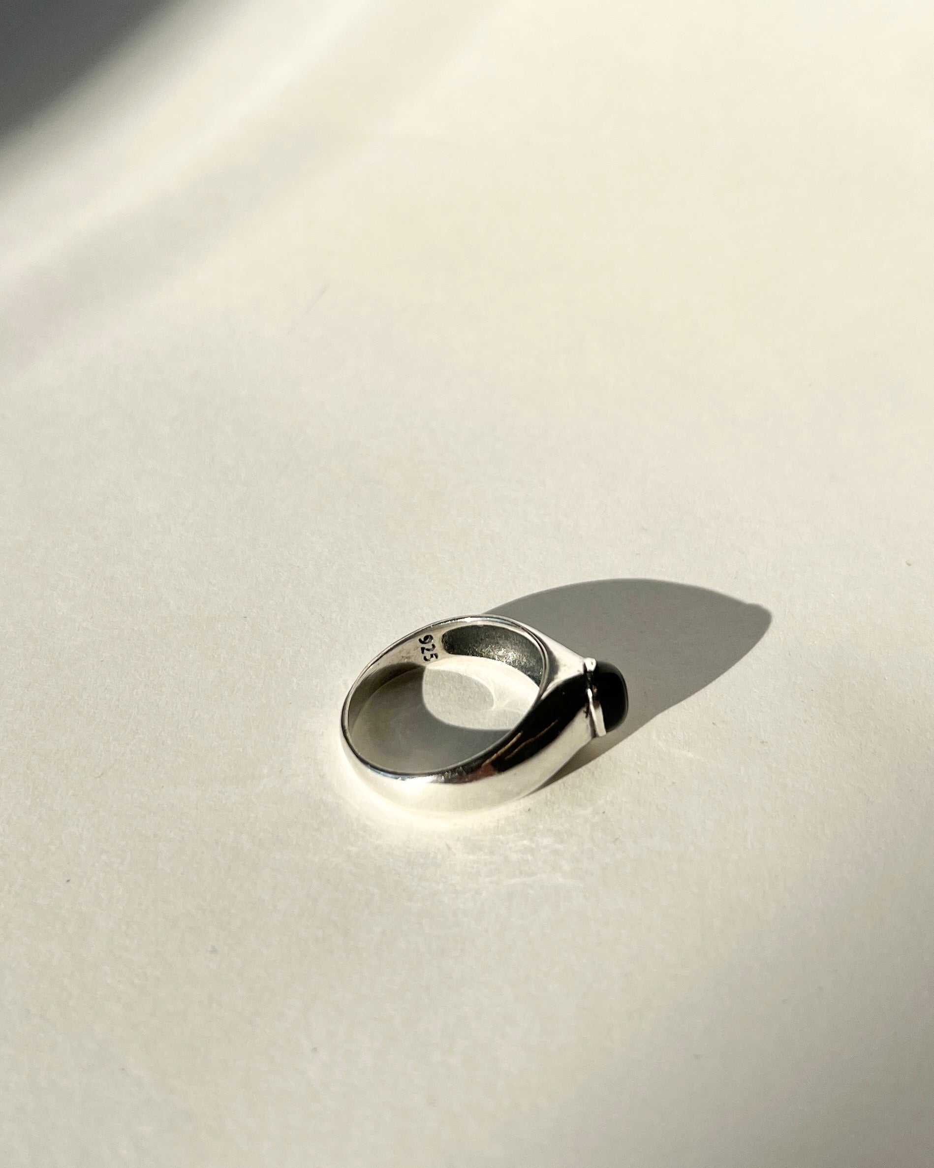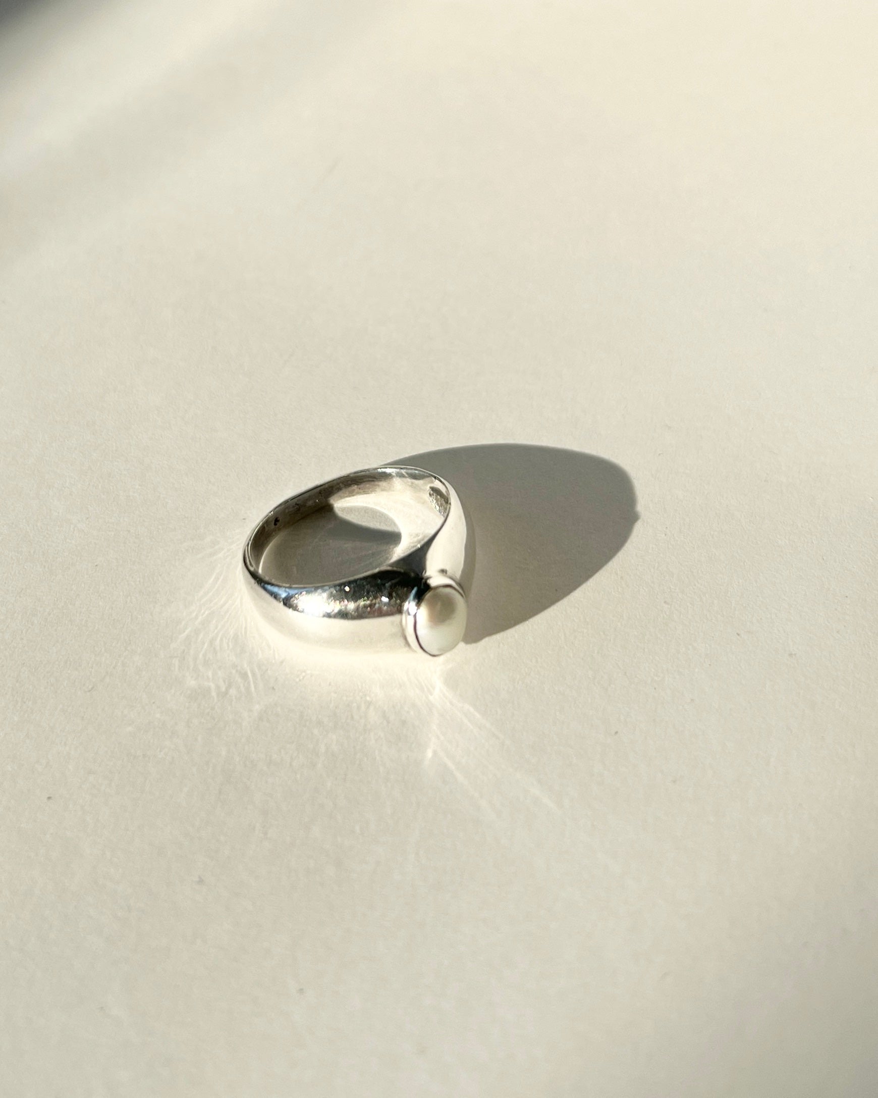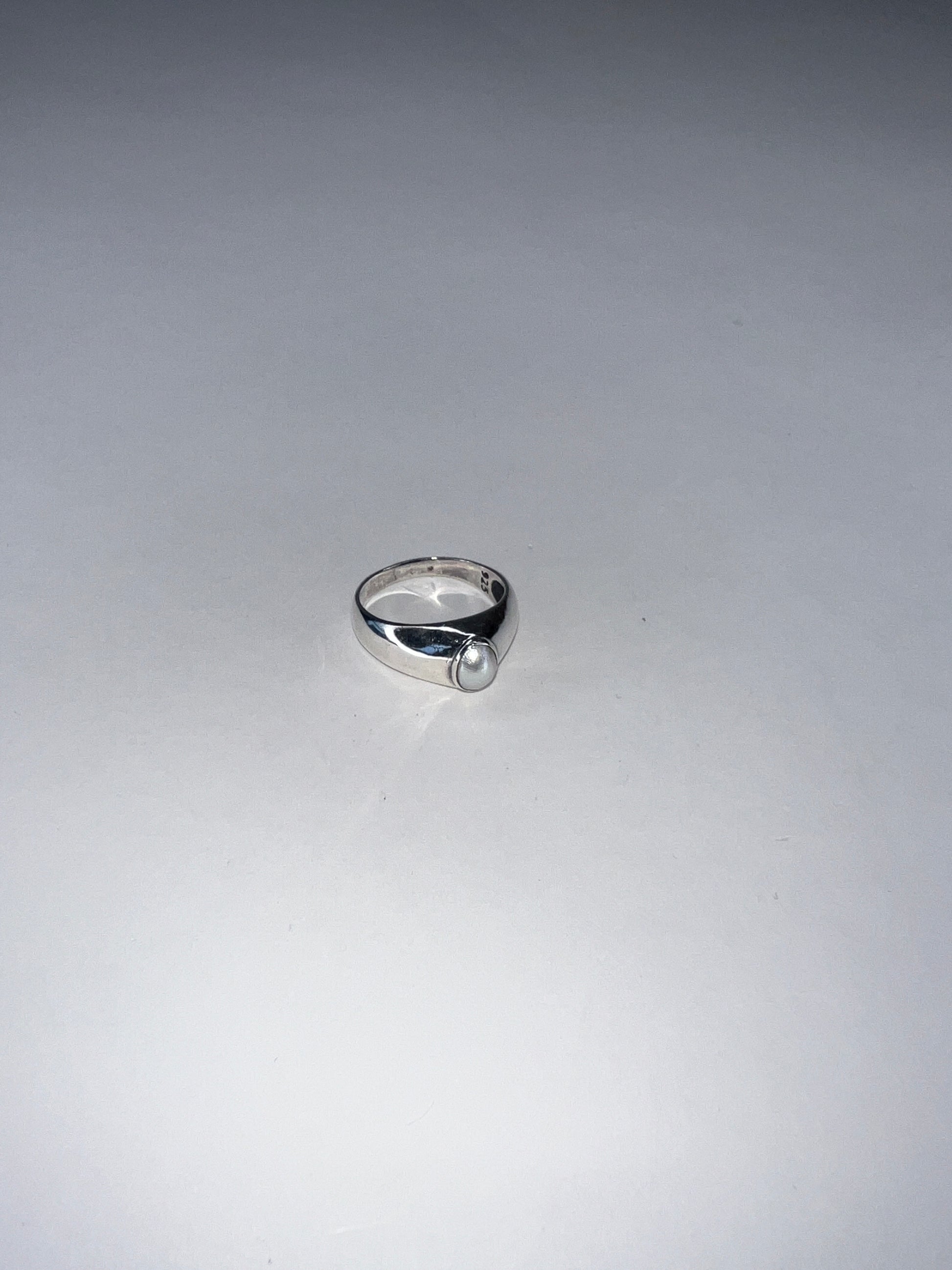 Identical silver rings each set with a pearl or a black onyx cabochon. Found in Chandni Chowk Silver Market in New Delhi.