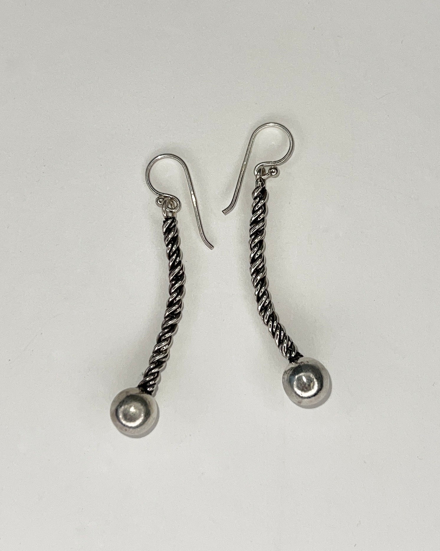 Vintage sculptural chain drop earrings with silver bead. Found at Chandni Chowk Silver Market in New Delhi.