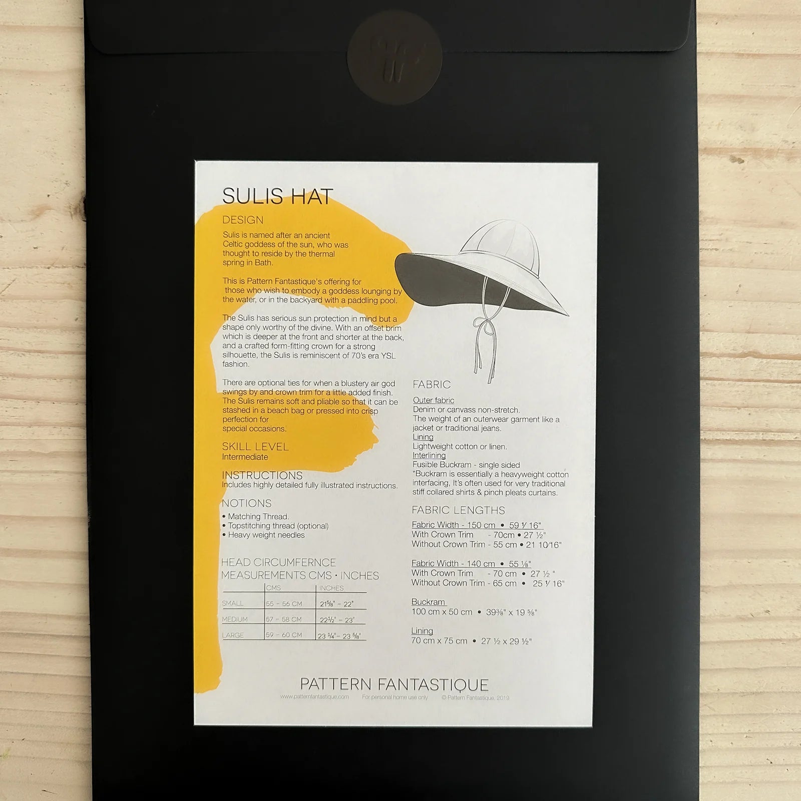 The Sulis Hat is named for an ancient Celtic goddess of the sun, who was thought to reside by the thermal spring in Bath. This is Pattern Fantastique's offering for those who wish to embody a goddess lounging by the water, or in the backyard with a paddling pool.