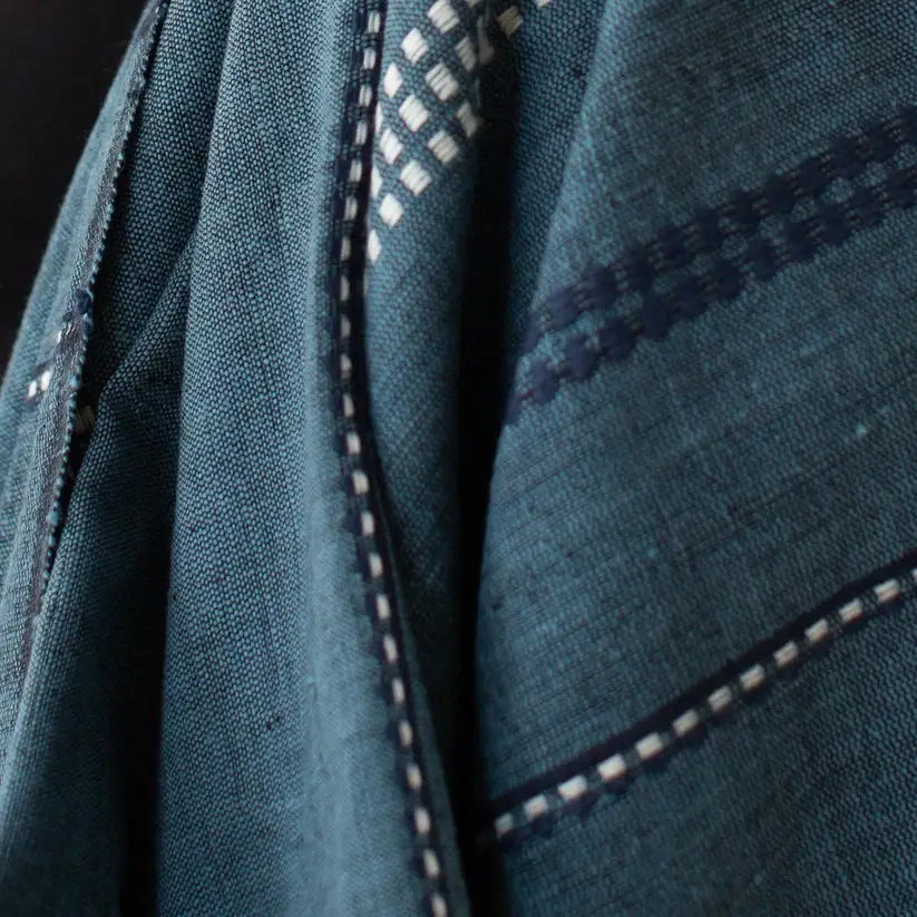 This handmade, eco friendly, Fair Trade throw blanket is beautiful and versatile. This light weight throw blanket can be used to decorate your bed, to wrap around yourself when you cozy up on the couch or even as a large picnic blanket. The design is a traditional Ethiopian motif. The cotton is hand spun and the throw is woven on one of the large looms in the Sabahar workshop. This throw blanket is finished with Sabahar's signature twisted fringes.